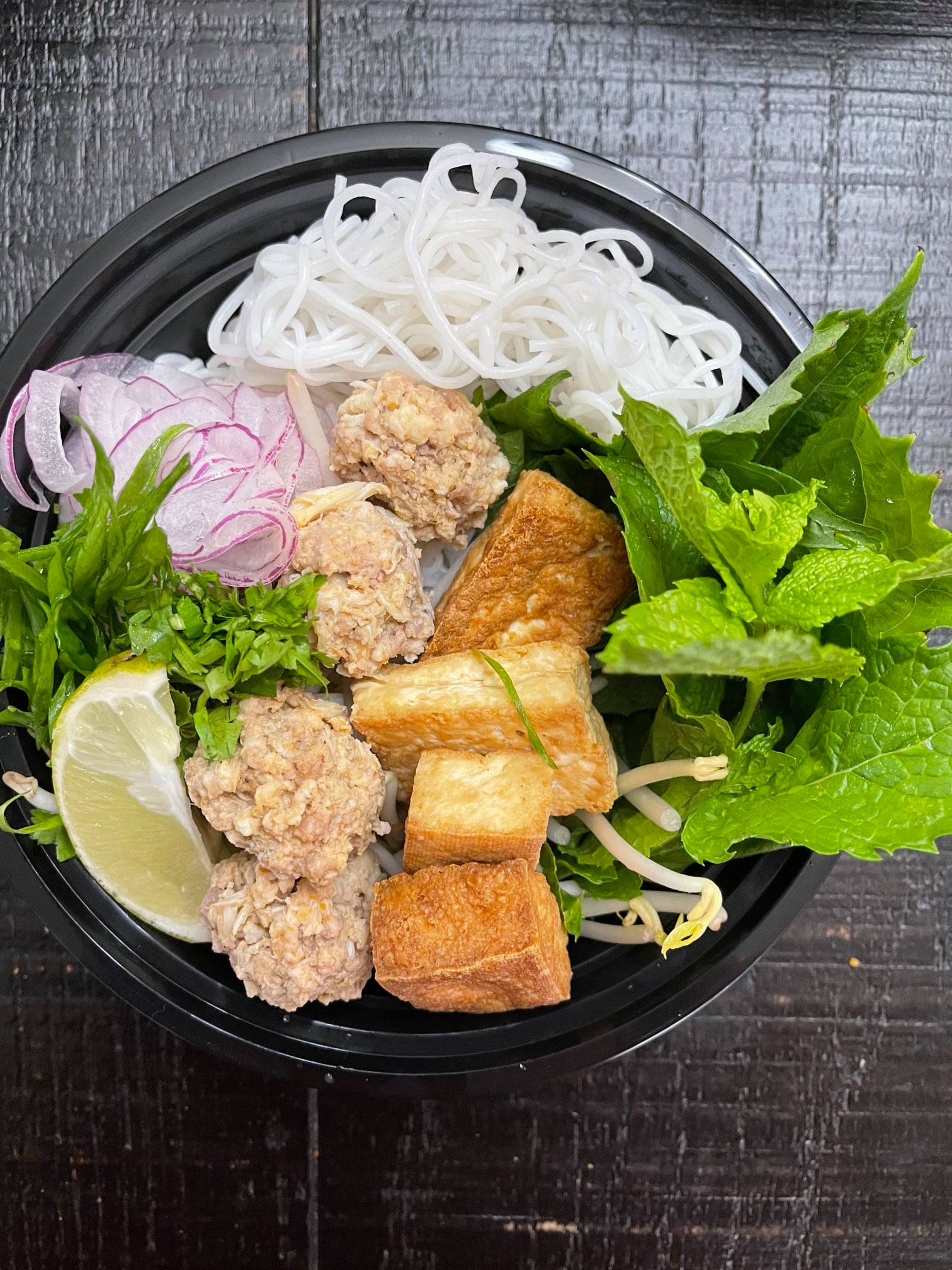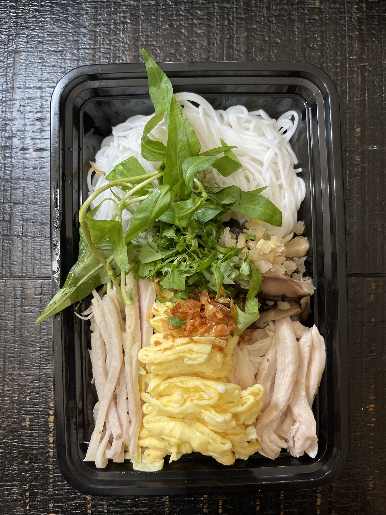 A delicate Hanoi-style vermicelli soup with shredded chicken, egg ribbons, and Vietnamese ham in a light, fragrant broth